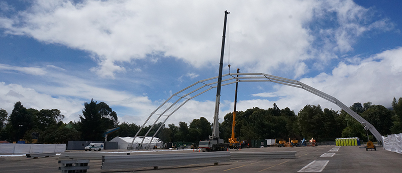 Con un total de 81 empleados de 18 países diferentes y también ofreciéndole empleo a 50 personas de cada ciudad, viajando atravez del contienen americano con 23 camiones que transportan 60 toneladas de equipo, para así instalar el “Hangar Sep7imo Día”, el cual mide 75X82 metros y con una altura de 22 metros para tener una capacidad de 7 mil personas, todo debe ser instalado durante un mes y 15 días de desarme, incluyendo la instalaciones de oficinas, capas artísticas y cocinas.