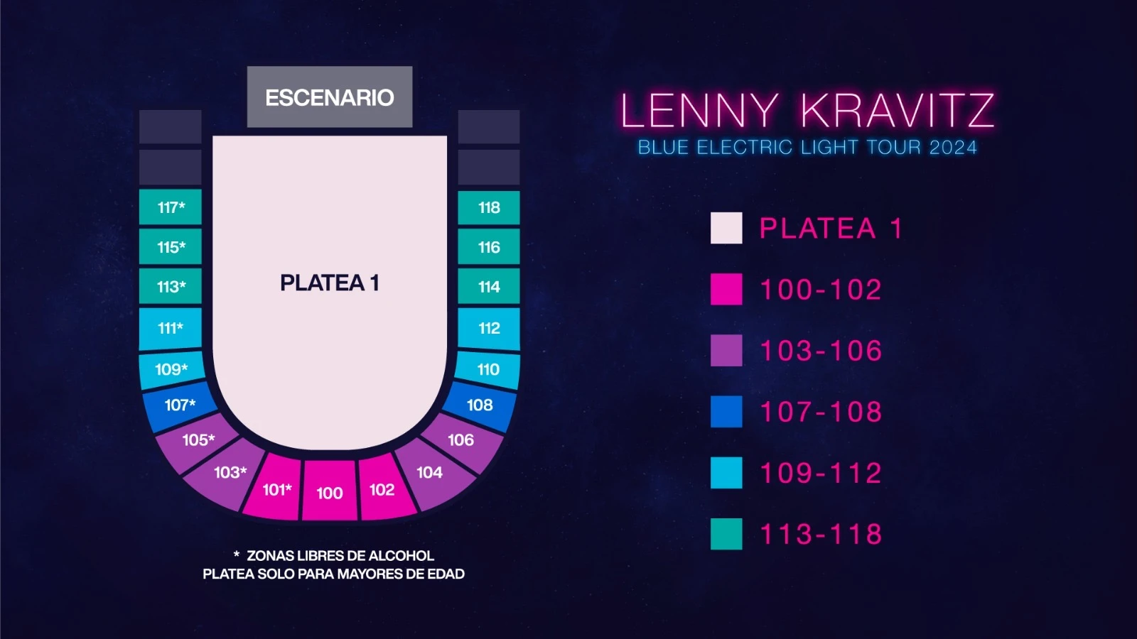 * Localidades impares (101-117): +12 años – Zona libres de alcohol.